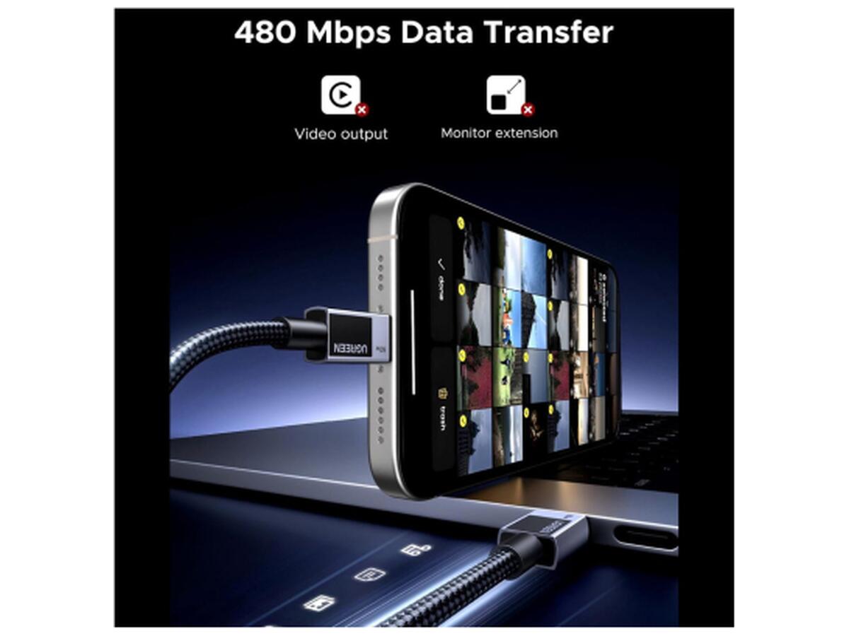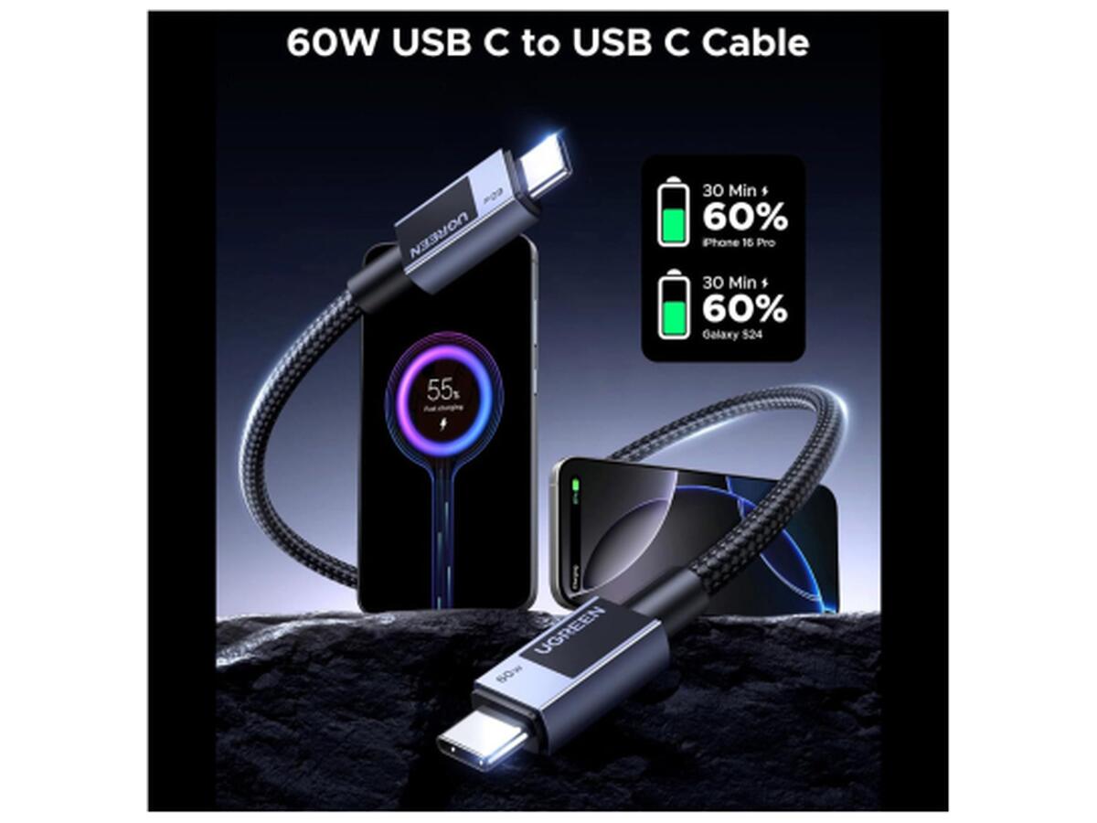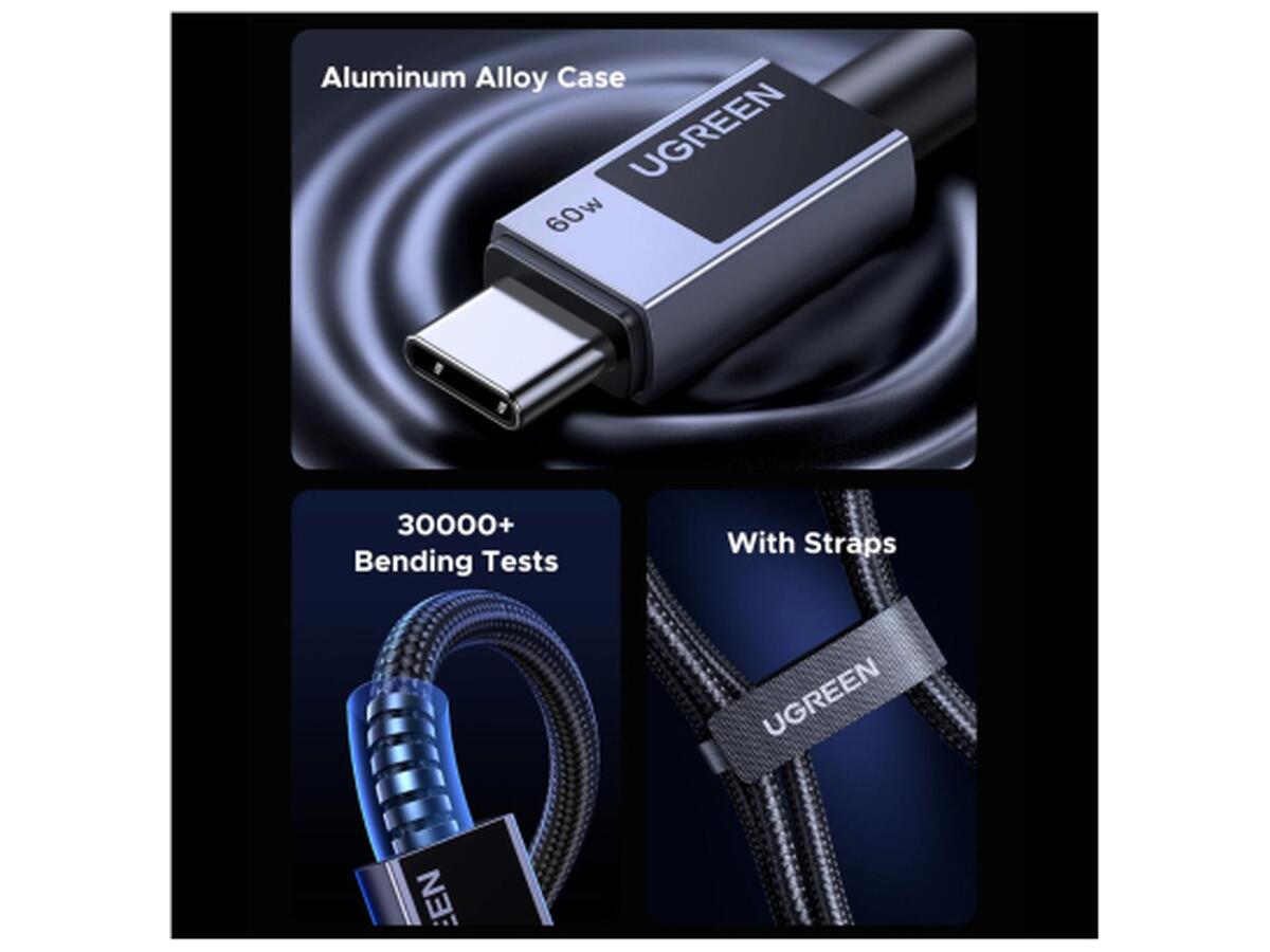Дата кабель USB-C to USB-C 2.0m PD60W 3A braided L524 gray Ugreen (55775)