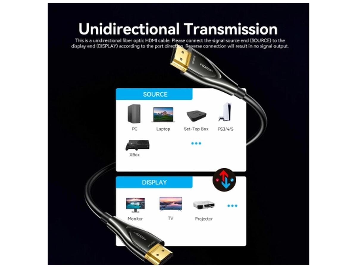 Кабель мультимедийный HDMI M to HDMI M 70.0m 4K60Hz fiber optic black Vention (ALSBAX)