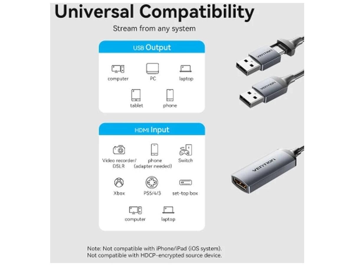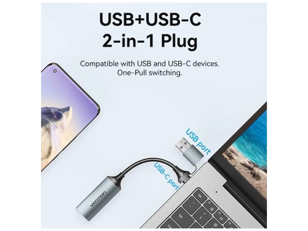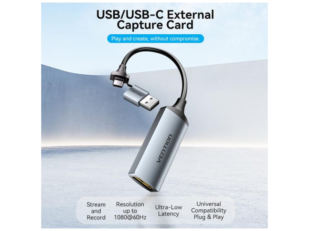 Переходник USB-C + USB-A to HDMI M 0.1m video capture gray Vention (ACWHA)