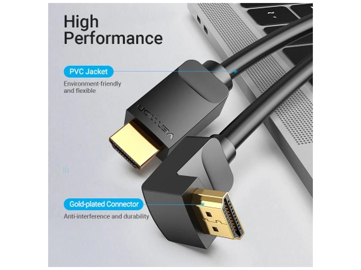 Кабель мультимедийный HDMI M to HDMI M 3.0m 4K60Hz 90° corner black Vention (AAQBI)