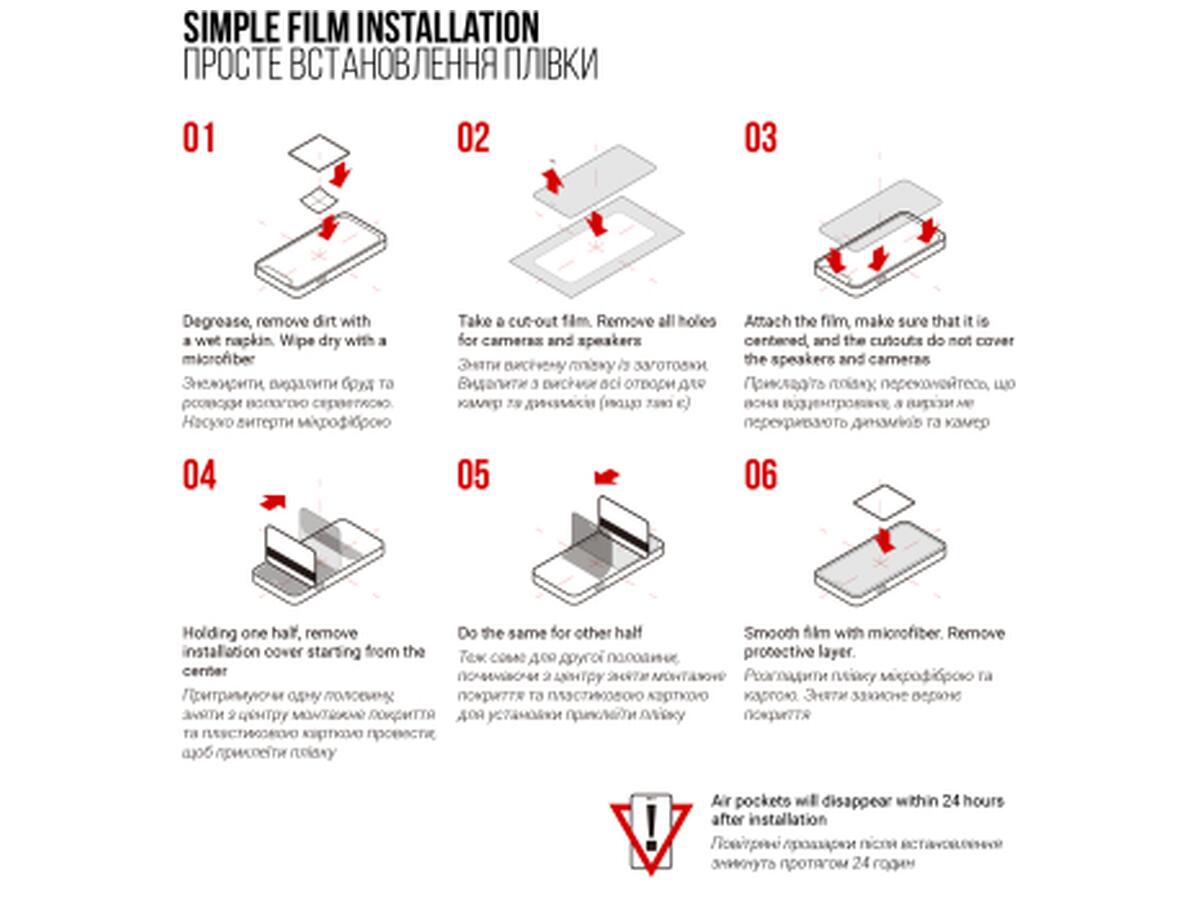 *При установке пленки можно использовать обычную банковскую карту, но важно делать это до снятия транспортировочного слоя пленки, иначе гидрогелевая пленка будет повреждена.