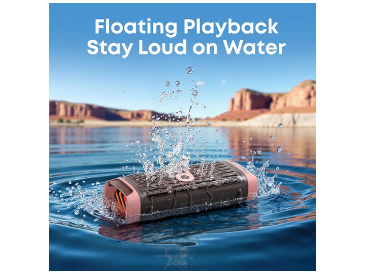 Первое в отрасли плавающее воспроизведение: остается в вертикальном положении и направленным вперед, даже на волнах. Без искажений, без погружения — только громкий, чистый звук для каякинга, вечеринок у бассейна и любых водных приключений.