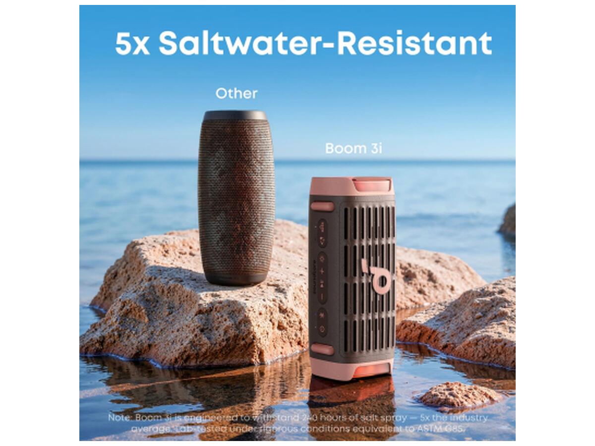 В 5 раз более устойчивый к соленой воде и сверхпрочный: создан для экстремальных условий — в 5 раз более устойчивый к соленой воде, поту и брызгам. Прошел испытания на падение с высоты 1 м. Идеально подходит для пляжных дней и прогулок на лодке, не ржавеет и не подвержен коррозии. Более прочный, чем большинство надежных динамиков для использования на открытом воздухе.