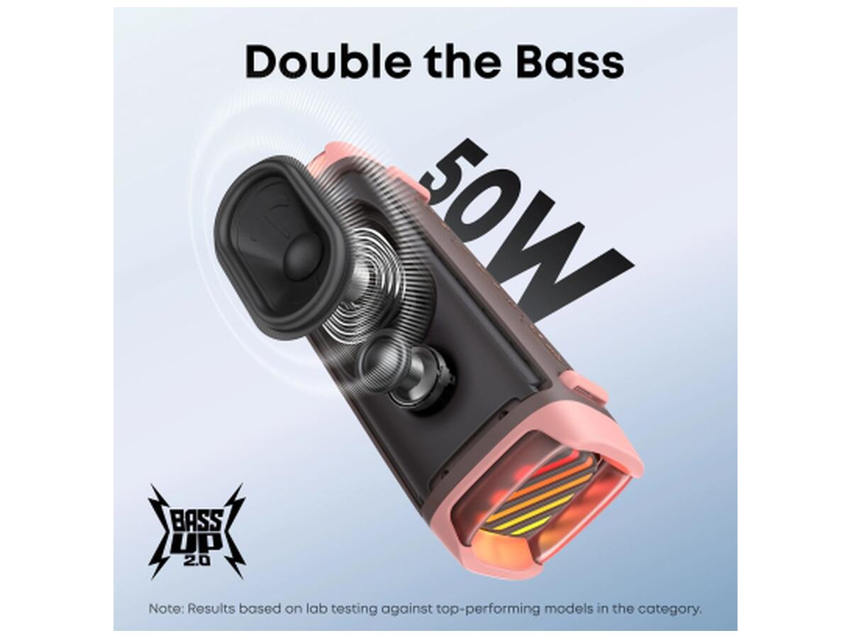 Удвоенный бас с BassUp™ 2.0: мощность 50 Вт с басами до 56 Гц. BassUp™ 2.0 и технология DSP обеспечивают насыщенные низкие и четкие высокие частоты. Серьезные аудиохарактеристики в компактном портативном динамике.