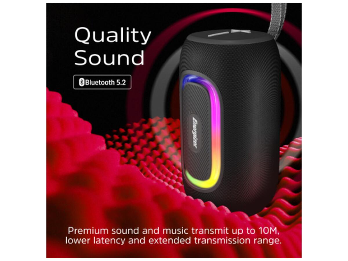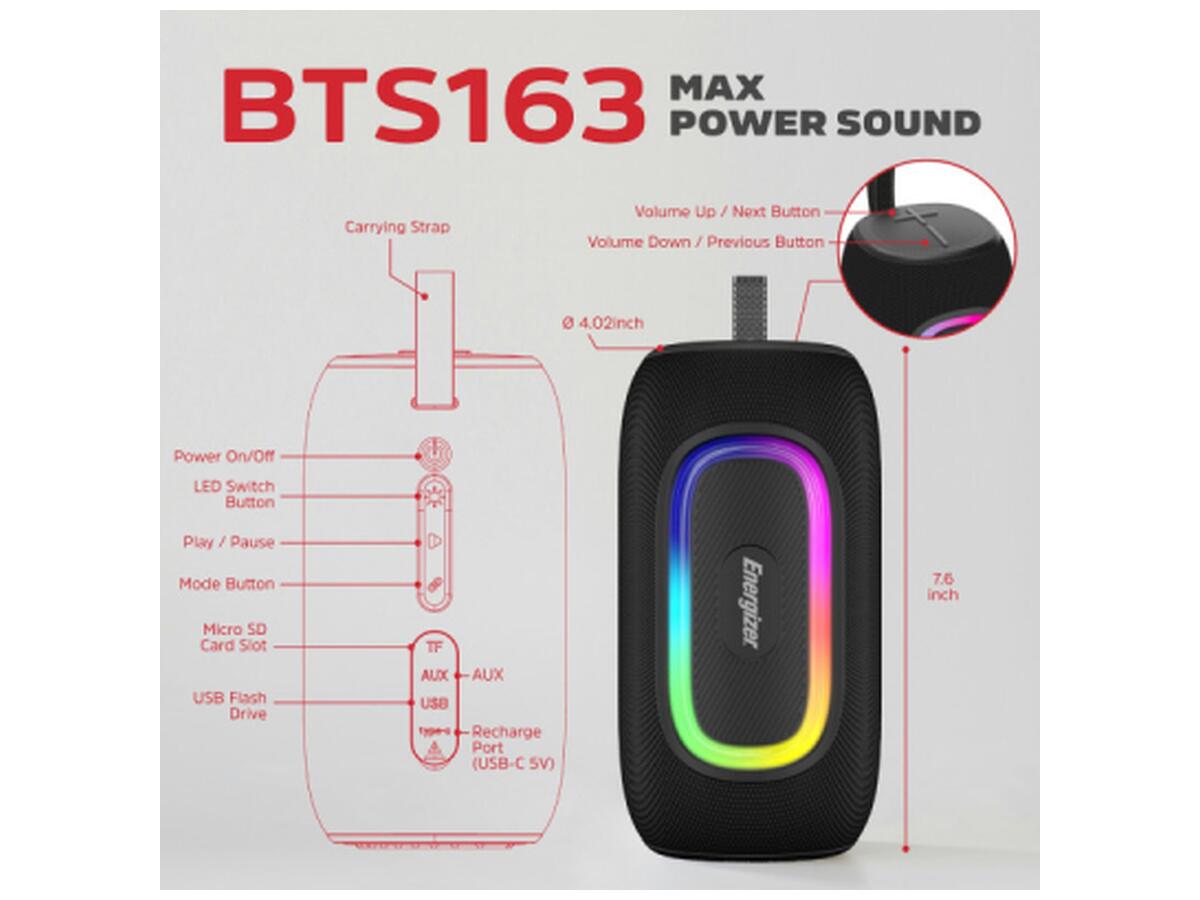 Прочный плетеный шнурок обеспечивает удобное переноску акустической системы Energizer BTS163.