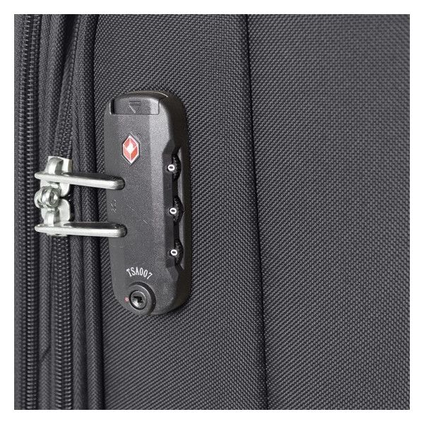 Чемодан оборудован фирменным кодовым замком с функцией таможенного досмотра TSA (Transportation Security Administration - Администрация по безопасности на транспорте). Таможенные службы совместно с Американской Ассоциацией по безопасности на транспорте (Transportation Security Administration или, сокращенно, TSA) получили абсолютное право, в целях безопасности, досматривать любой чемодан на колесах или сумку, показавшуюся им подозрительной. Агенты по безопасности на транспорте снабжены специальными TSA ключами, за которые они несут персональную ответственность. Благодаря наличию в замке функции TSA после досмотра ваши замки останутся целыми и невредимыми в отличии от багажа без функции TSA.