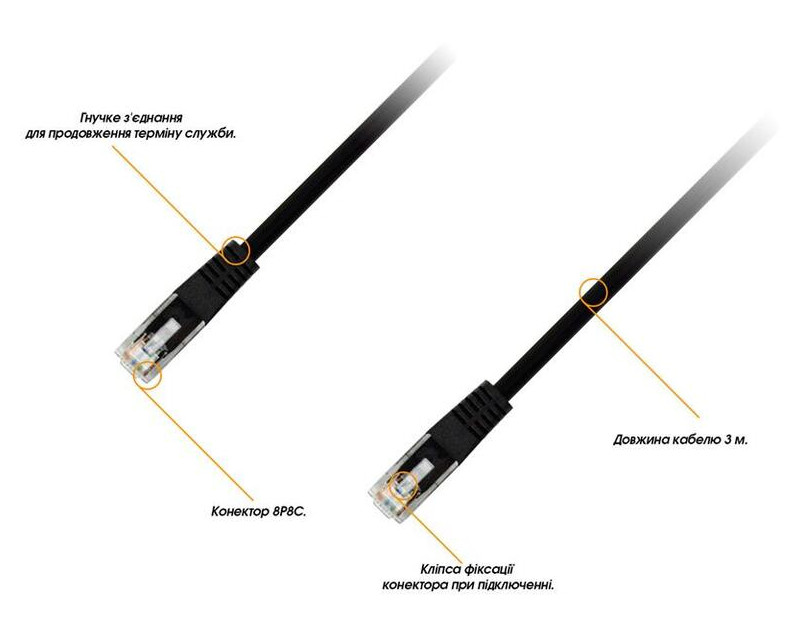 | короткі характеристики | Тип: UTP Довжина кабелю: 5 м Категорія: 5е Колір чорний |