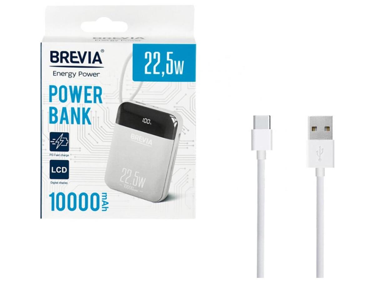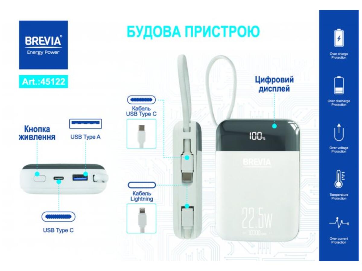 Універсальна мобільна батарея Brevia 10000mAh 22.5W Type-C+Lightning Cable, Li-Pol, LCD (45122)