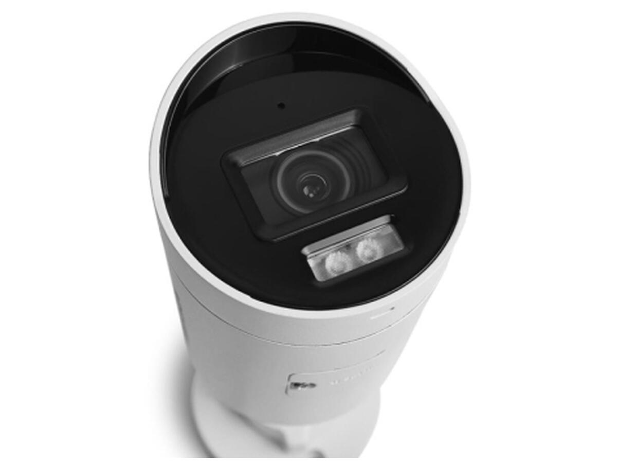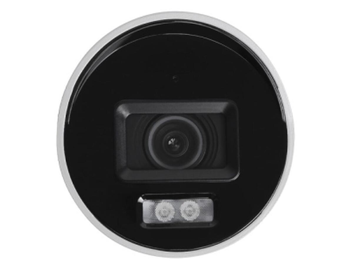 Фіксований об'єктив із фокусною відстанню 2.8 мм охоплює широкий кут огляду у 105° по горизонталі, що дозволяє контролювати велику площу. Комбіноване підсвічування (ІЧ + LED) забезпечує чітке зображення навіть у повній темряві на відстані до 40 метрів.