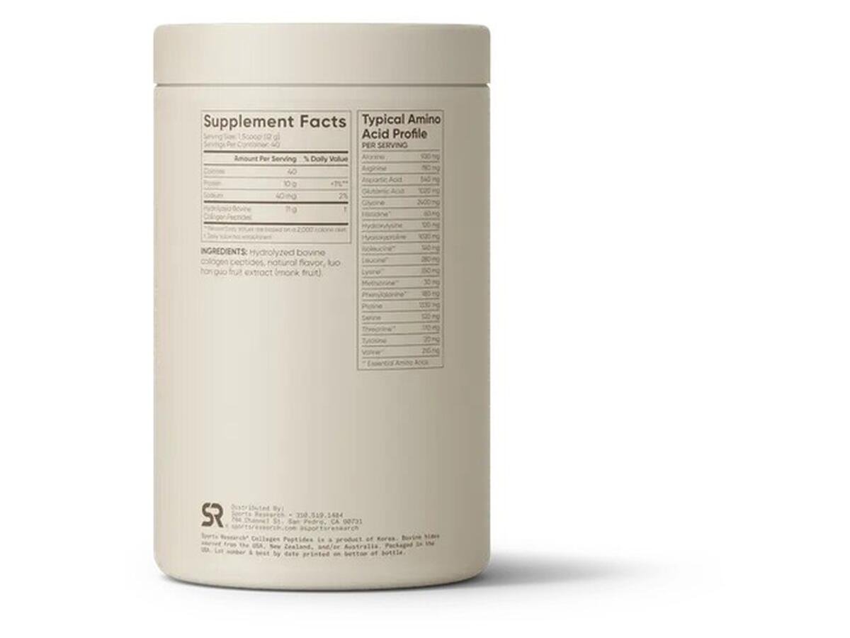 Sport Research Collagen Peptides — високоякісна харчова добавка з гідролізованими колагеновими пептидами типів I та III, отриманими з першокласного яловичого колагену. Кожна порція забезпечує організм 11 грамами колагену та 10 грамами білка, що сприяє зміцненню шкіри, підвищенню еластичності суглобів та загальному покращенню самопочуття.