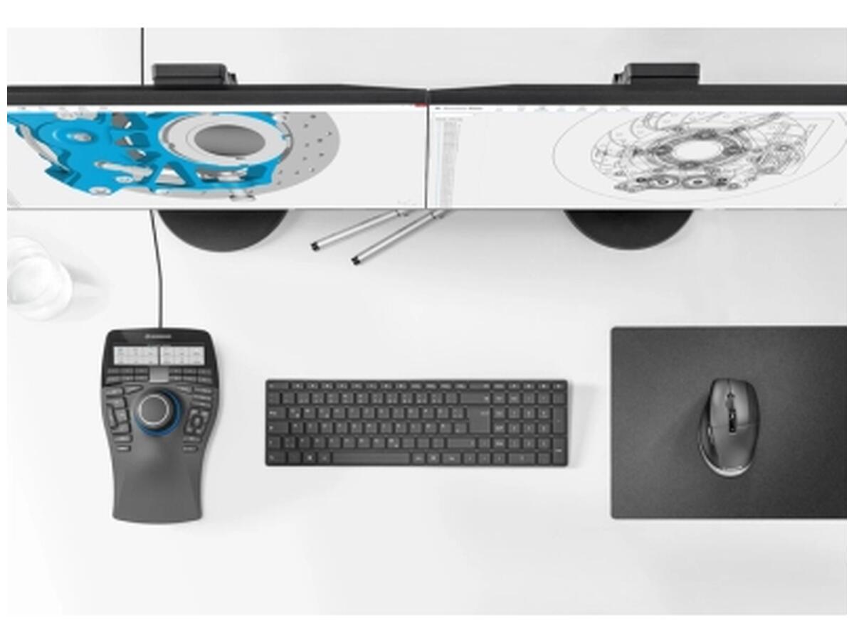 Комплект SpaceMouse Enterprise Kit 2 включає передову 3D-мишу SpaceMouse Enterprise, бездротову CadMouse Pro та спеціальний килимок CadMouse Pad, які разом створюють унікальну систему управління для роботи з 3D-моделями та кресленнями. Цей набір значно підвищує комфорт і ефективність, знижуючи навантаження на руки та дозволяючи легко і точно керувати просторовим положенням об'єктів.