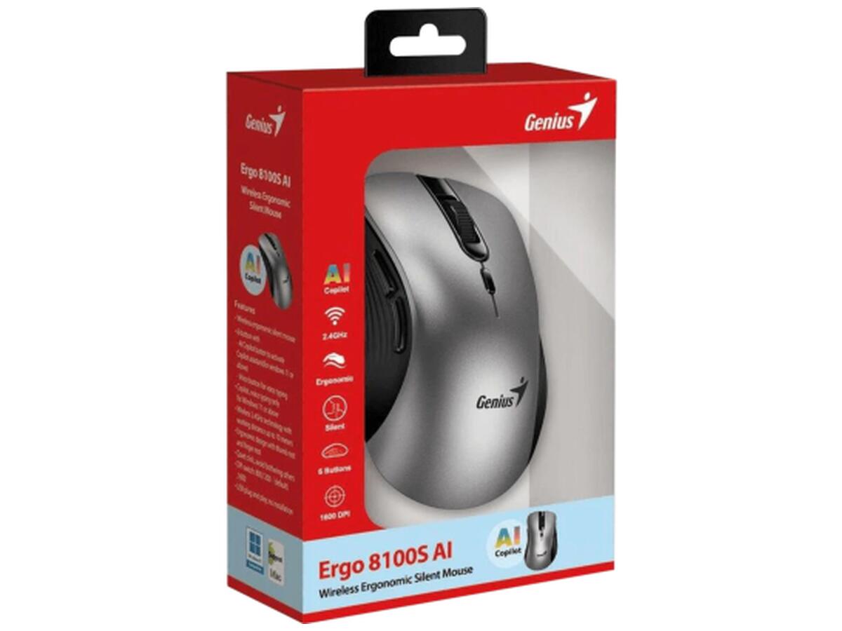 Genius Ergo 8100S AI Silent Wireless Grey — це ідеальний вибір для тих, хто шукає поєднання сучасних технологій, надійності і стилю в одному аксесуарі. Відчуйте новий рівень комфорту і продуктивності з цією безшумною, багатофункціональною мишкою, яка стане вашим незамінним помічником у щоденній роботі.