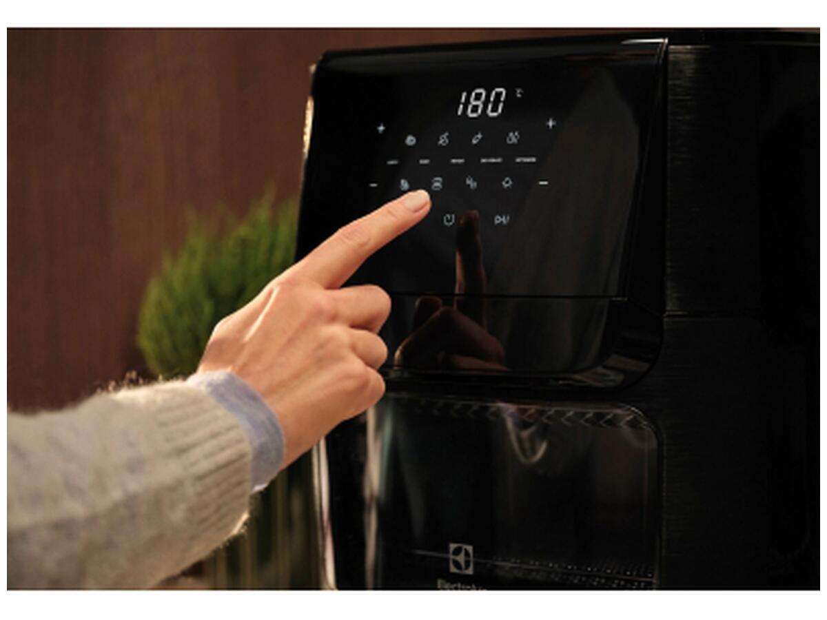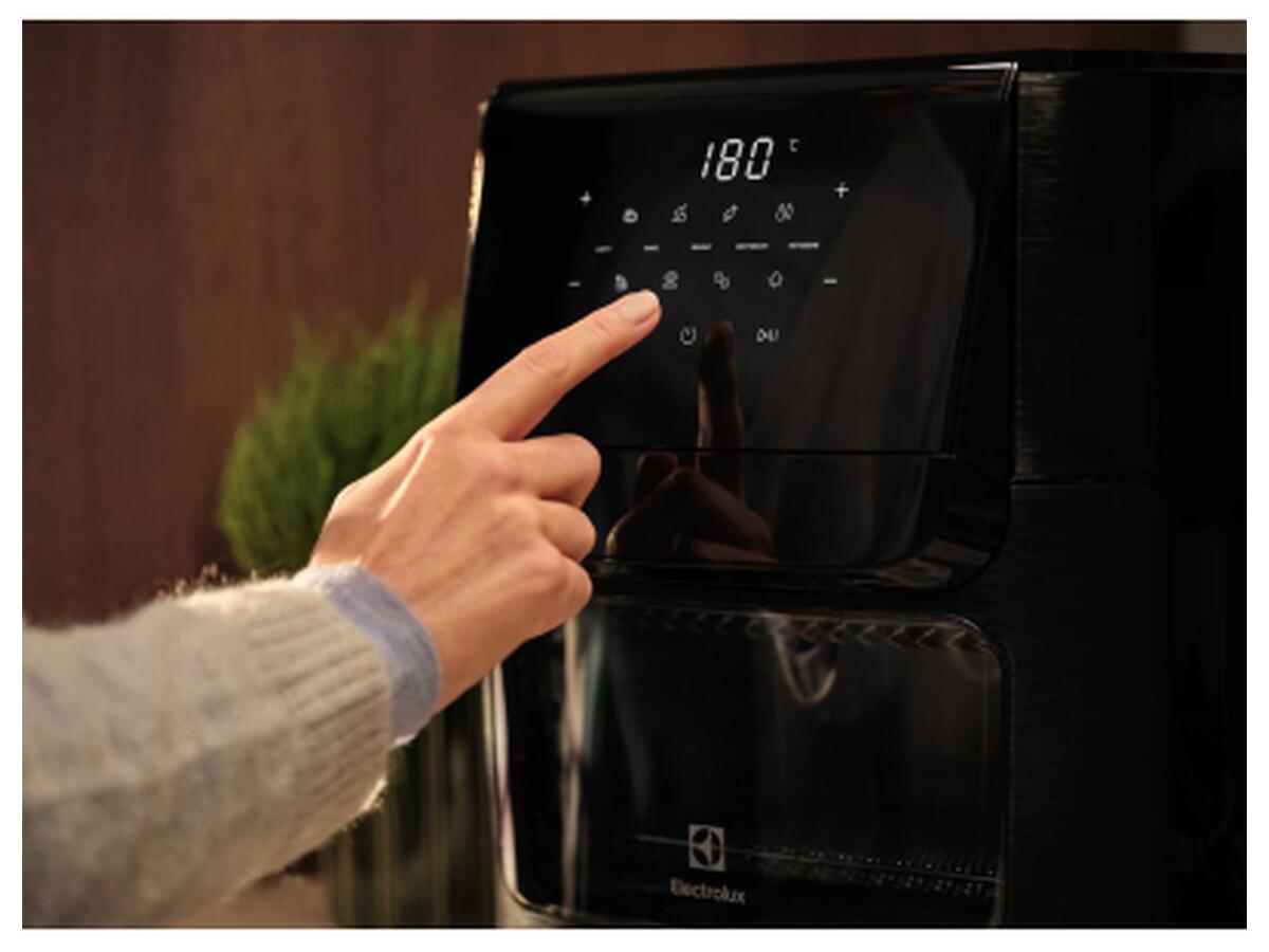 Мультипіч Electrolux EAF12B – це багатофункціональний прилад із об'ємом 12 літрів, який поєднує в собі можливості аерофритюрниці, духовки, грилю та сушарки. Сенсорне керування з цифровим дисплеєм дозволяє легко обирати режими приготування, а регулювання температури від 60 до 200 °C дає можливість точного контролю процесу.