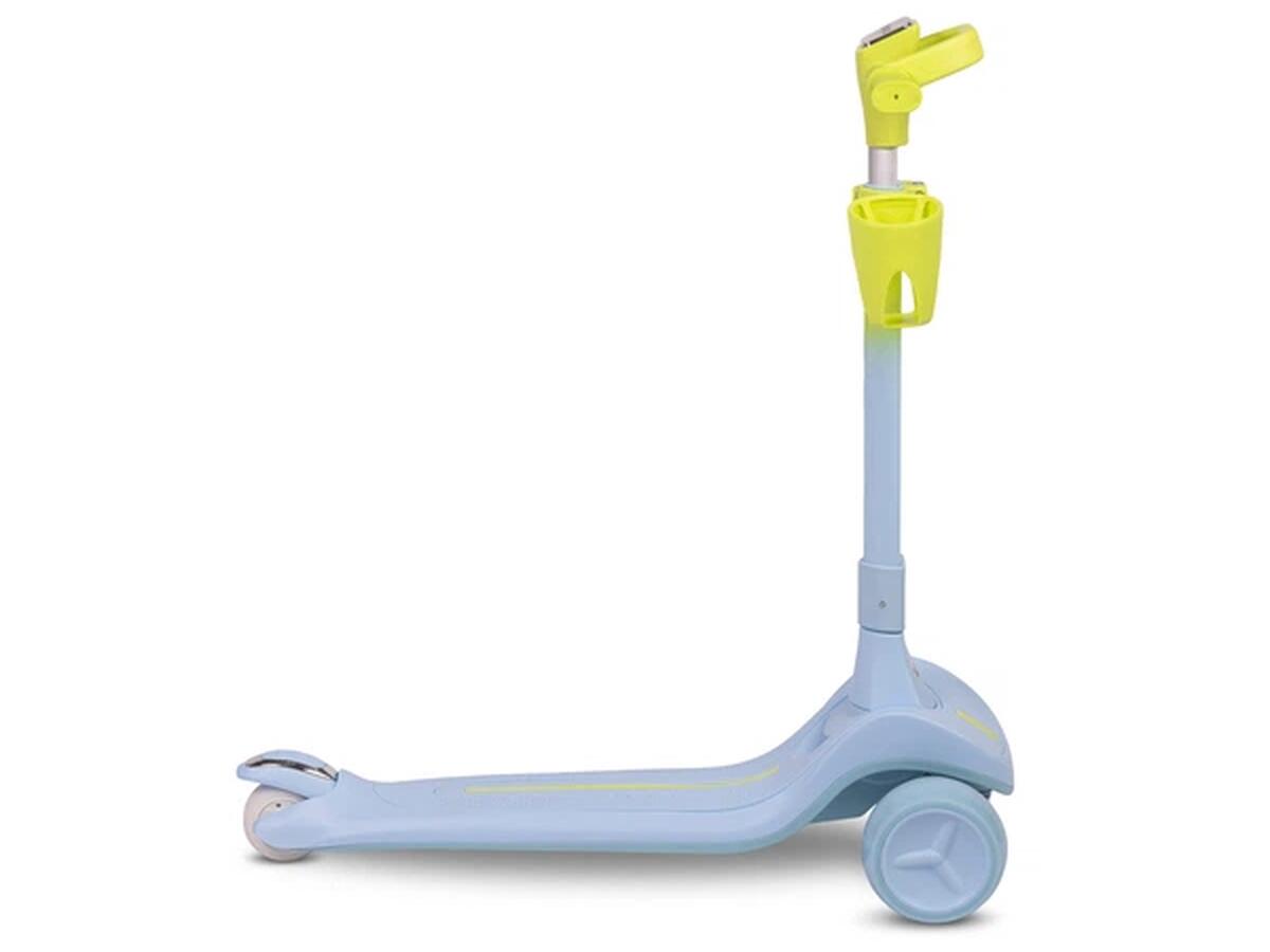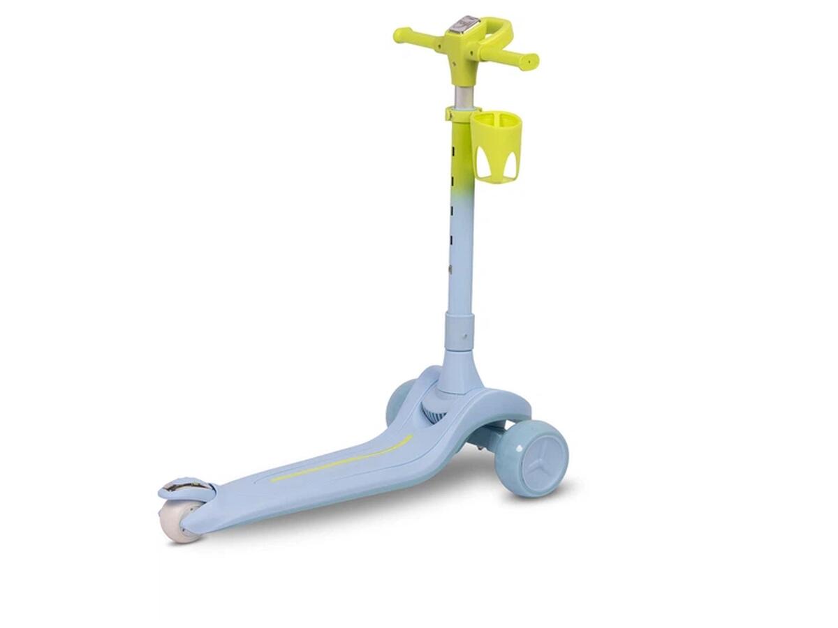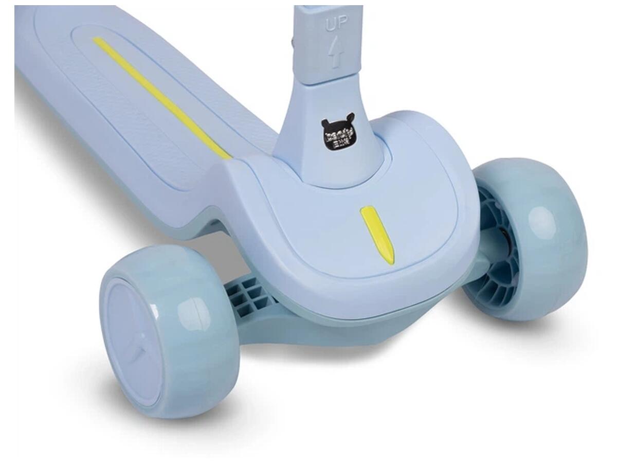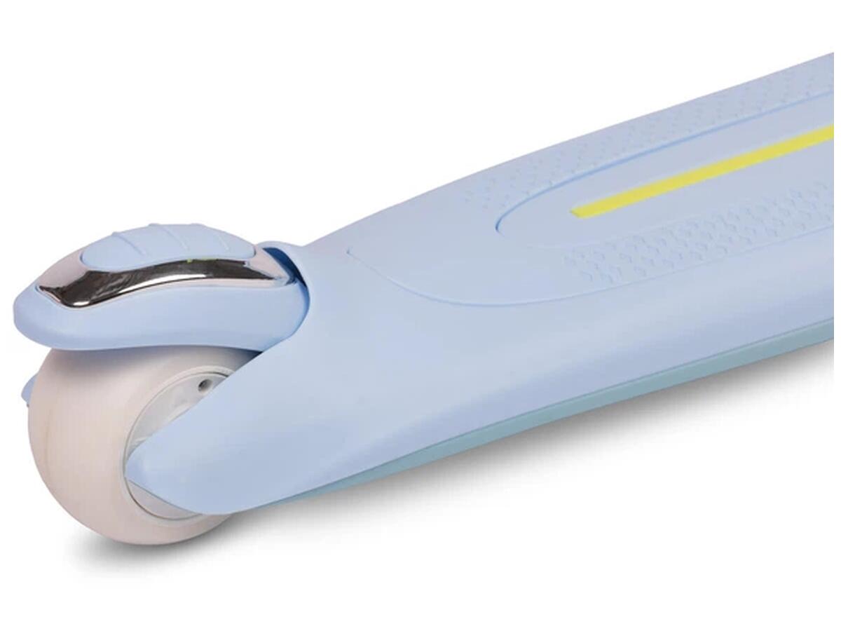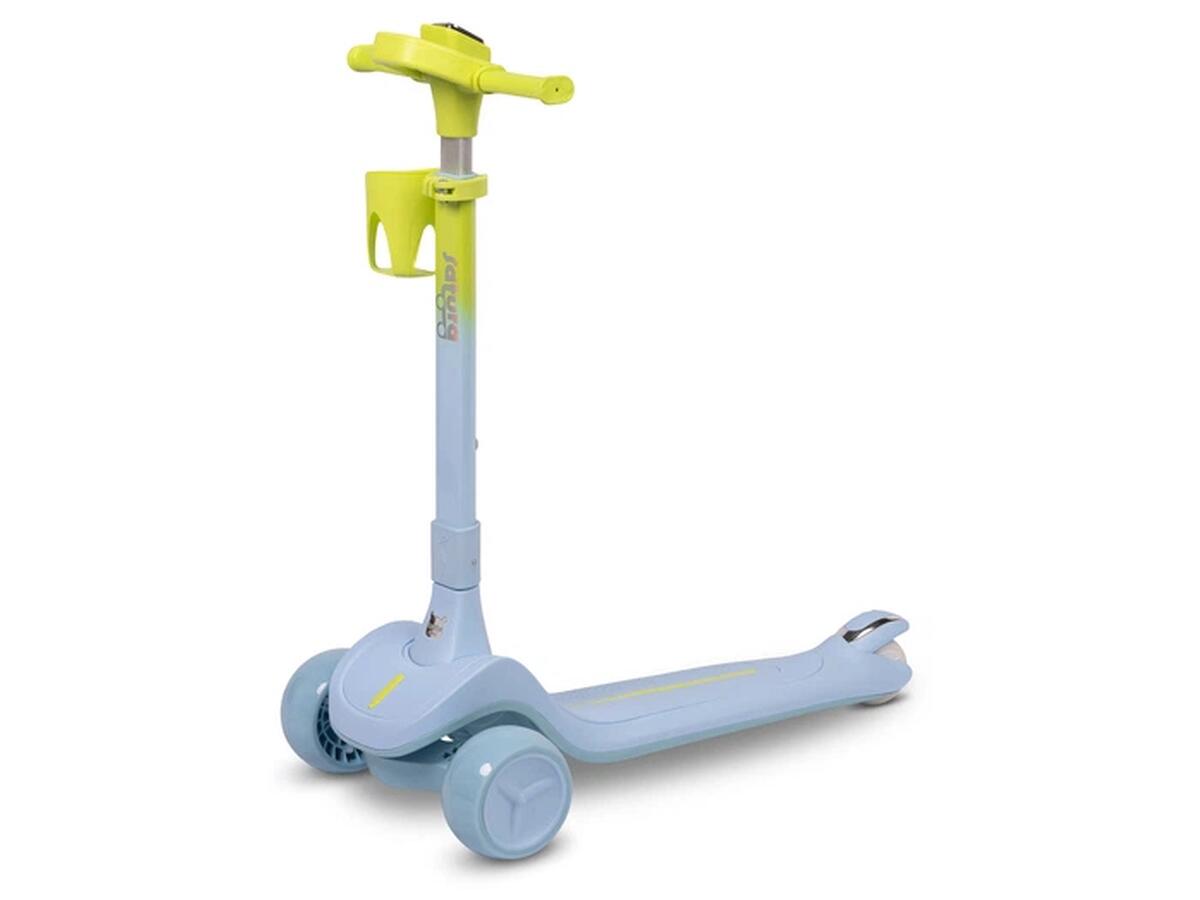Самокат трьохколісний Caretero Satura Blue — чудовий вибір для активних малюків від 3 років. Він витримує навантаження до 50 кг і оснащений світлодіодним підсвічуванням на колесах та підніжці, яке автоматично вмикається під час руху без використання батарейок, створюючи яскравий і безпечний світловий ефект.