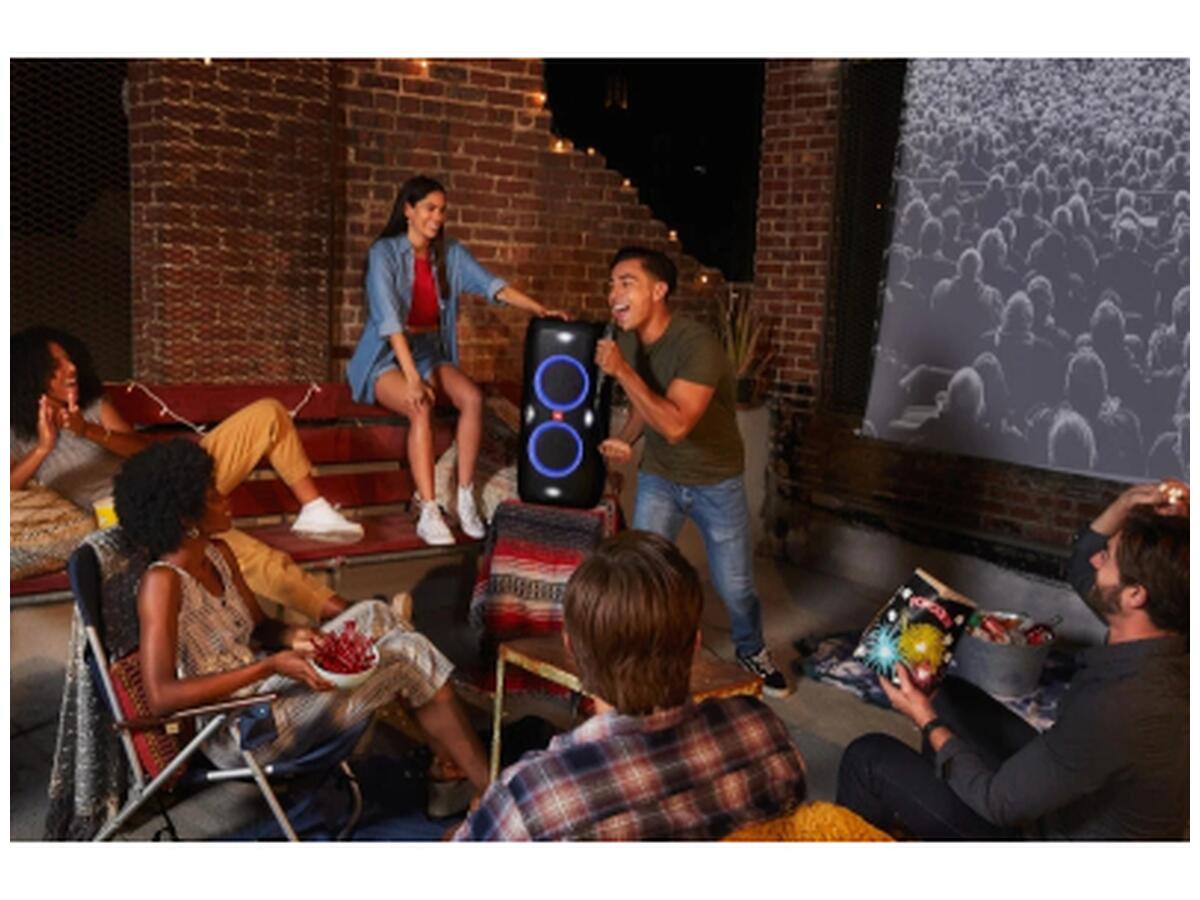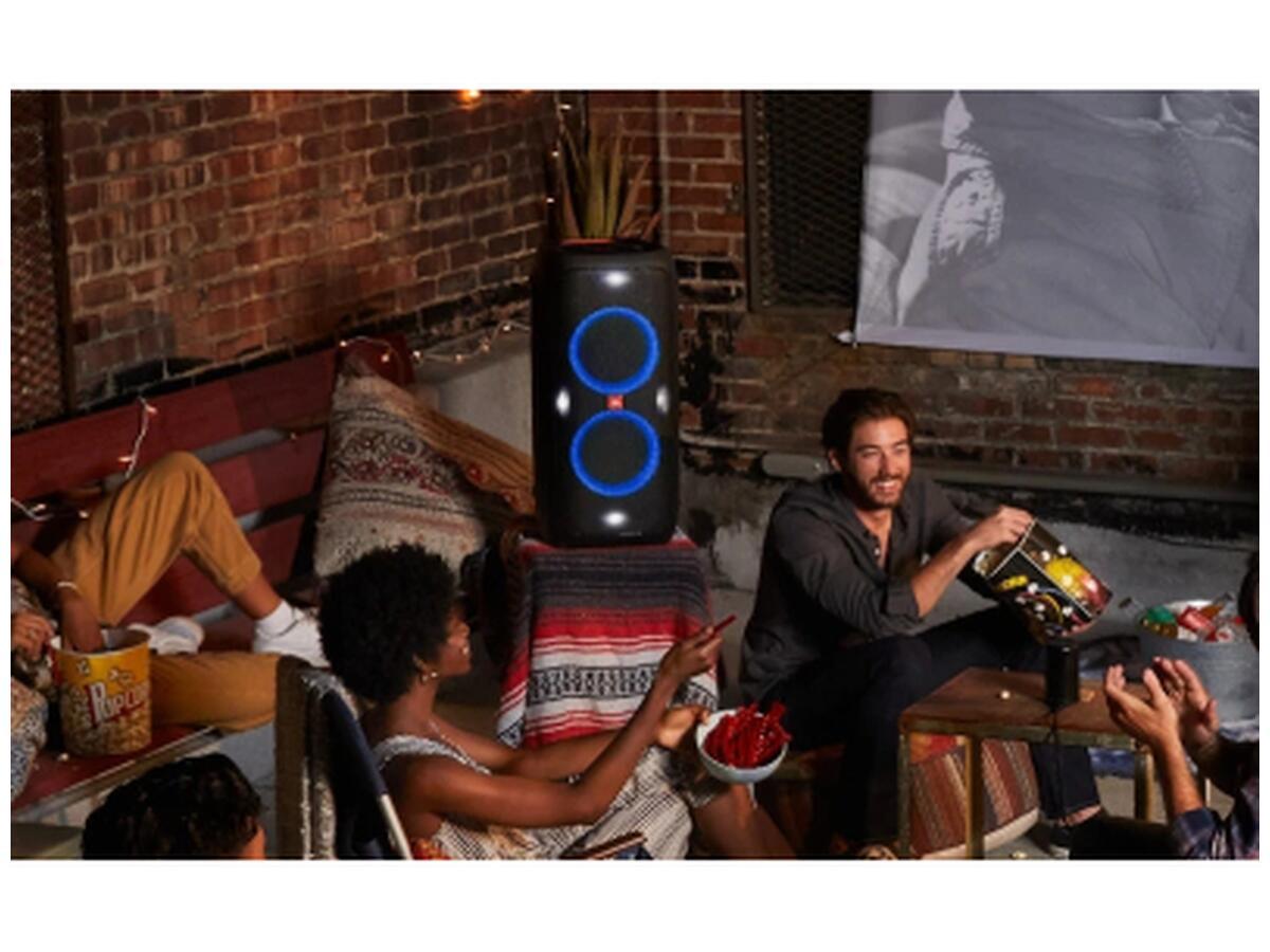 - Управління через додаток JBL PartyBox для легкої настройки звуку та світлових ефектів