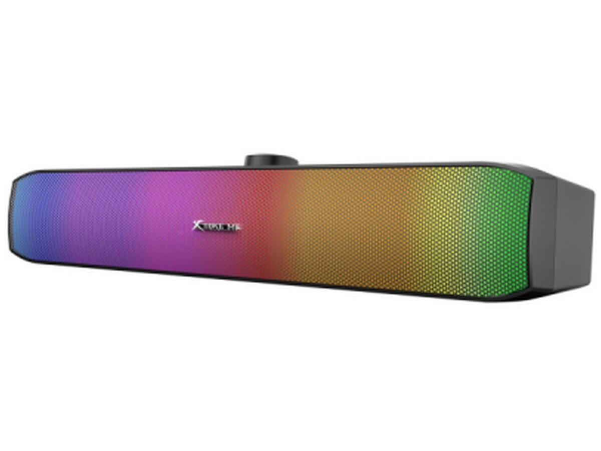Вбудоване RGB підсвічування додасть візуальну привабливість, створюючи атмосферу та підкреслюючи сучасний дизайн. Регулювання гучності розташоване на верхній панелі, забезпечуючи зручне керування звуком.