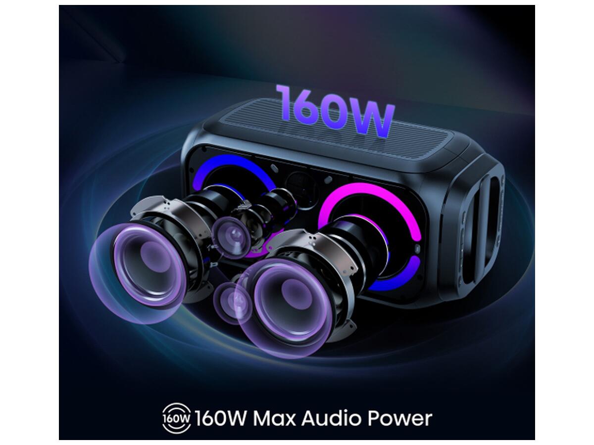 Ця компактна акустична система забезпечує потужний звук з вихідною потужністю 160 Вт. Завдяки бездротовому підключенню через Bluetooth 5.0, а також інтерфейсам USB та AUX (3.5 мм), ви легко підключите пристрій до будь-якого джерела звуку. PARTY ROCKET 160 оснащена режимом караоке для розваг та має захист за стандартом IPX4, що робить її стійкою до бризок води. Вбудований акумулятор дозволяє працювати до 12 годин без підзарядки, ідеально підходить для вечірок просто неба. Стильний чорний корпус гармонійно впишеться у будь-який інтер'єр.