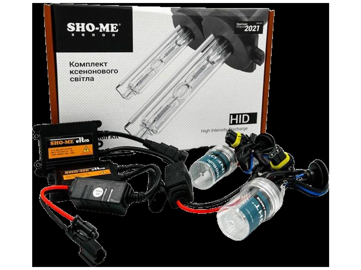Комплект ксенону Sho-me, призначений для встановлення в легкові авто з живленням бортової мережі 12V. Надійний блок розпалювання Ultra Slim лампи Infolight (відмінна відповідність ціни, якості та надійності) Температура свічення: 6000К (холодне біле світло) Потужність: 35 Вт Вхідна напруга: 9-16 В Максимальна сила струму, що споживається: стартова сила струму 6.5A, після стабілізації роботи 3.2A Температура роботи комплекту: -40 до 105° Знижене електромагнітне випромінювання блоків Бездоганна робота 99% ламп та блоків протягом усього періоду експлуатації Гарантія 12 місяців