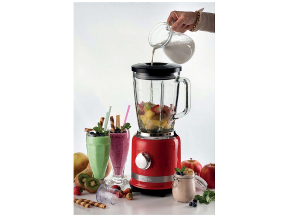 Блендер має чотири швидкості, а також імпульсний режим для точного контролю над обробкою продуктів. Надійний захист від перегріву та протиковзкі ніжки гарантують безпеку й стійкість пристрою під час роботи. Яскравий червоний колір корпусу стильний і гармонійно впишеться в будь-який інтер'єр кухні.