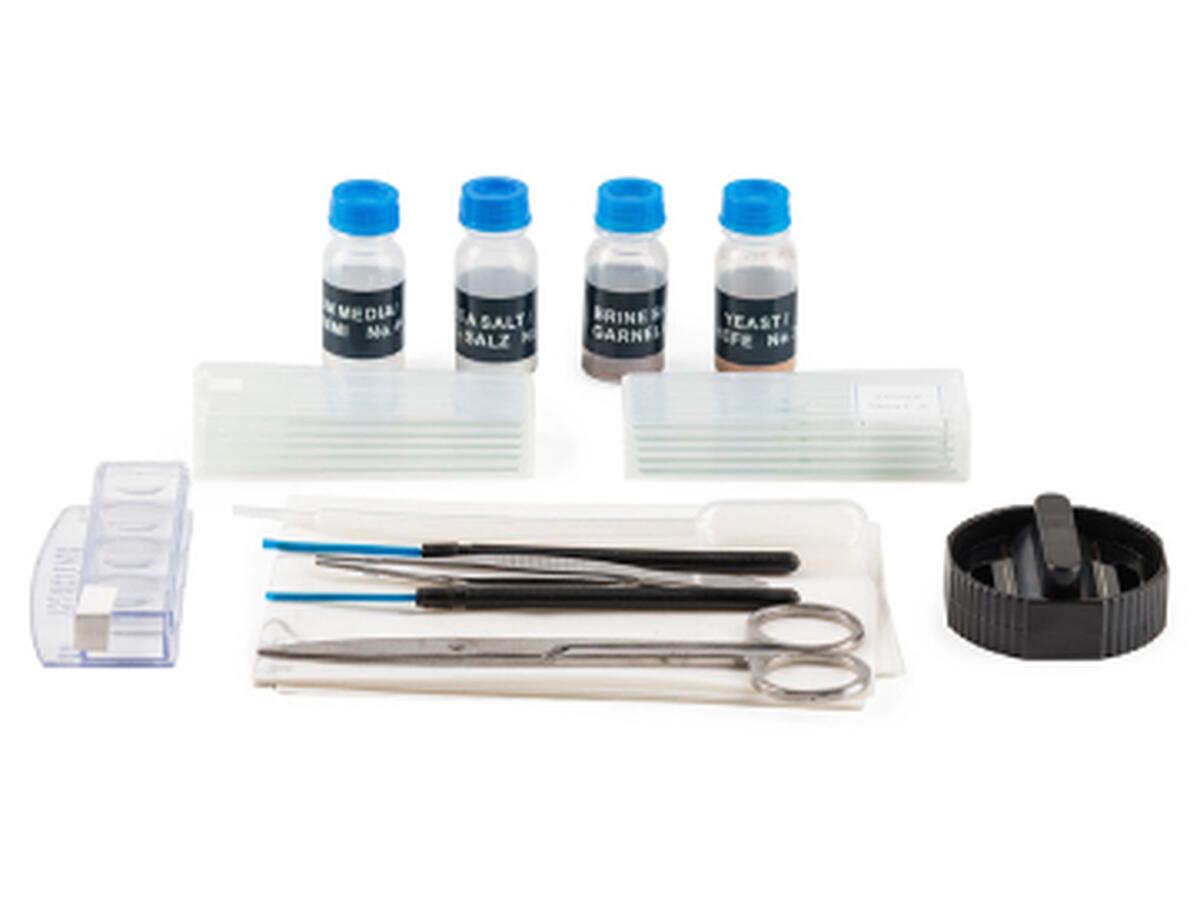 Комплект поставки містить різноманітні аксесуари: підготовлені слайди, ємності з біологічним матеріалом, мікротом, пінцет та інші необхідні інструменти для повноцінного навчання та самостійних експериментів.