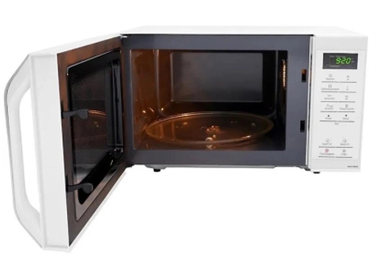 Мікрохвильова піч обладнана поворотним столом діаметром 288 мм і функцією турбо розморожування, що забезпечує рівномірне підігрівання та швидке розморожування. Додатково є підсвітка камери та таймер для зручності використання.