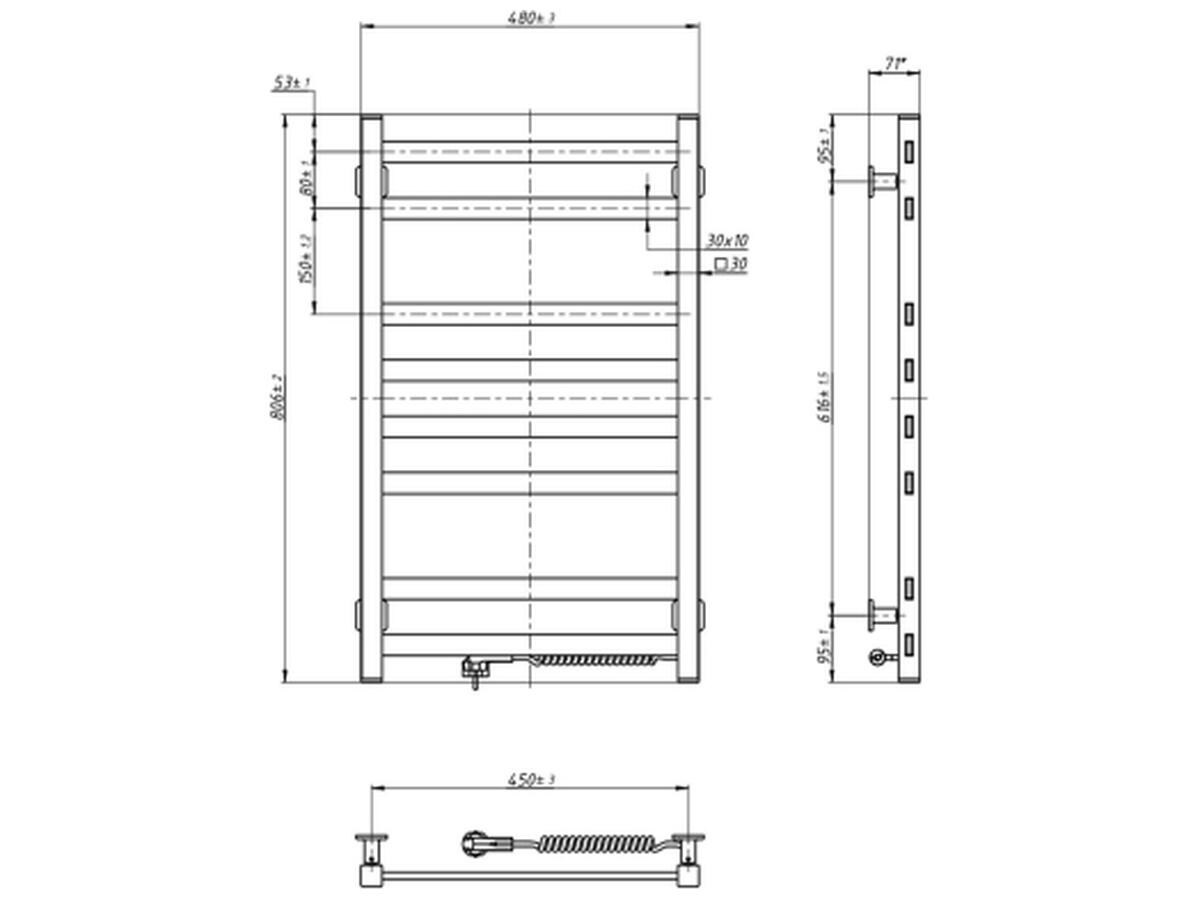 Електрична рушникосушка Navin Авангард має сучасний і строгий дизайн завдяки конструкції з квадратних профільних труб 30х30 мм і прямокутних перекладин 30х10 мм. Таке поєднання матеріалів надає їй міцність та довговічність. Пристрій покритий порошковою фарбою, що забезпечує захист від корозії та продовжує термін служби.