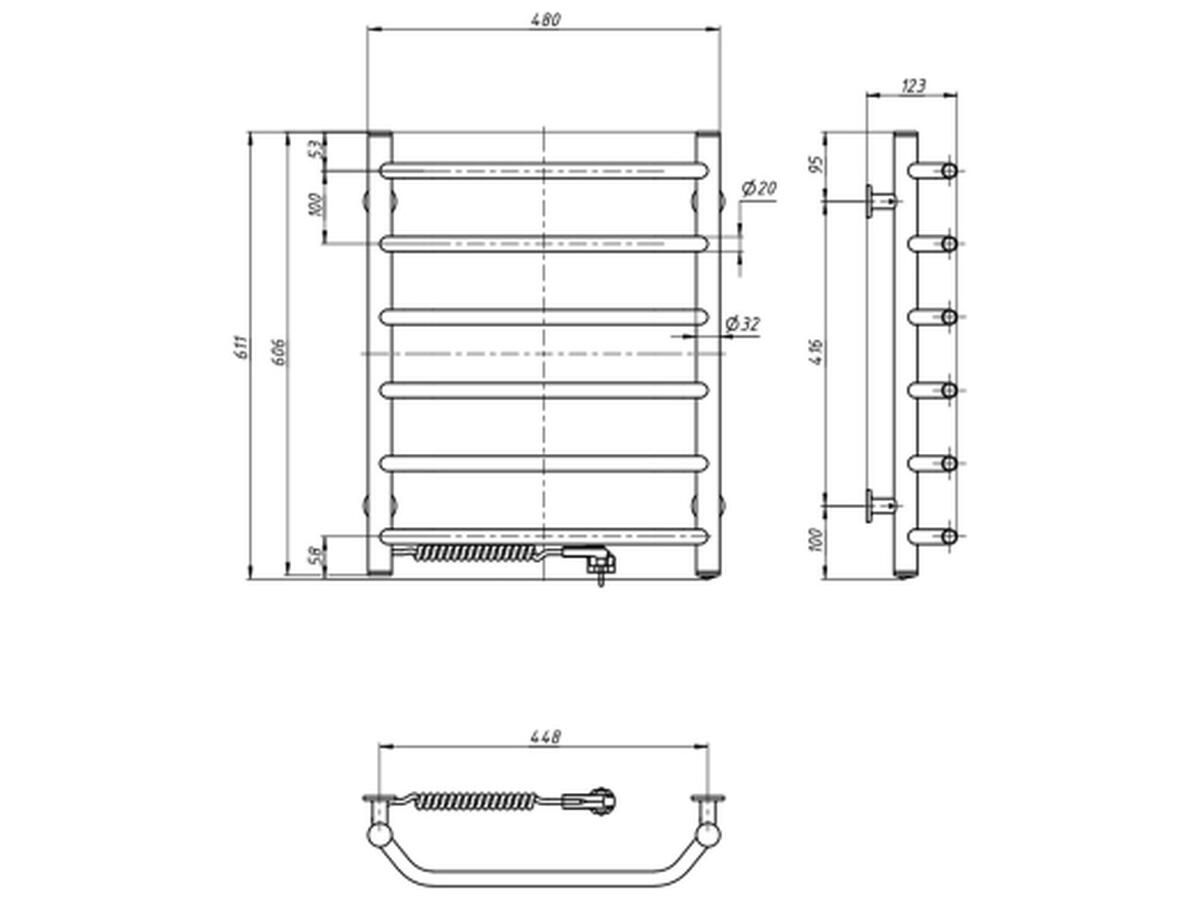 Електрична модель рушникосушки Блюз від виробника Navin представлена у компактних розмірах 600х480 мм. Виготовлена з вуглецевої сталі високої якості з глянсовим порошковим покриттям, ця сушарка вирізняється міцністю та довговічністю. Пристрій оснащений сухим Теном, що забезпечує теплову потужність до 104 Вт та максимальну температуру нагріву до 55°C, що гарантує ефективне та безпечне сушіння рушників. Клас захисту IP44 дозволяє використовувати рушникосушку в умовах підвищеної вологості. Підключення здійснюється з лівого боку, а міжосьова відстань складає 450 мм, забезпечуючи зручність монтажу та експлуатації.